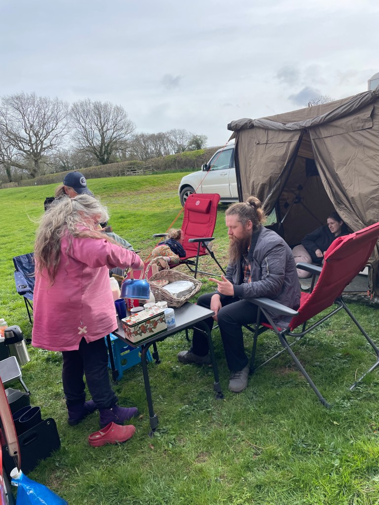 After all the excitement, the assembled company enjoyed cups of tea and hot cross buns as we sat shivering in the freezing blast. Sensibly, the rest of the family returned to the sanctity of four walls, a solid roof and central heating, leaving us to our overnight fate.